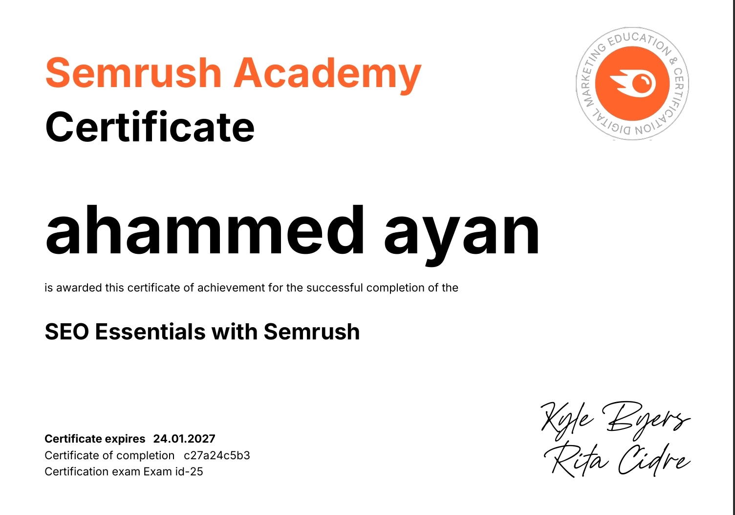 I have earned a total of six professional certifications, reflecting my strong commitment to continuous learning, skill development, and professional excellence in the field of digital marketing and related domains. These certifications represent both theoretical knowledge and practical, hands-on experience, enabling me to deliver effective, result-driven solutions in today’s competitive digital landscape.